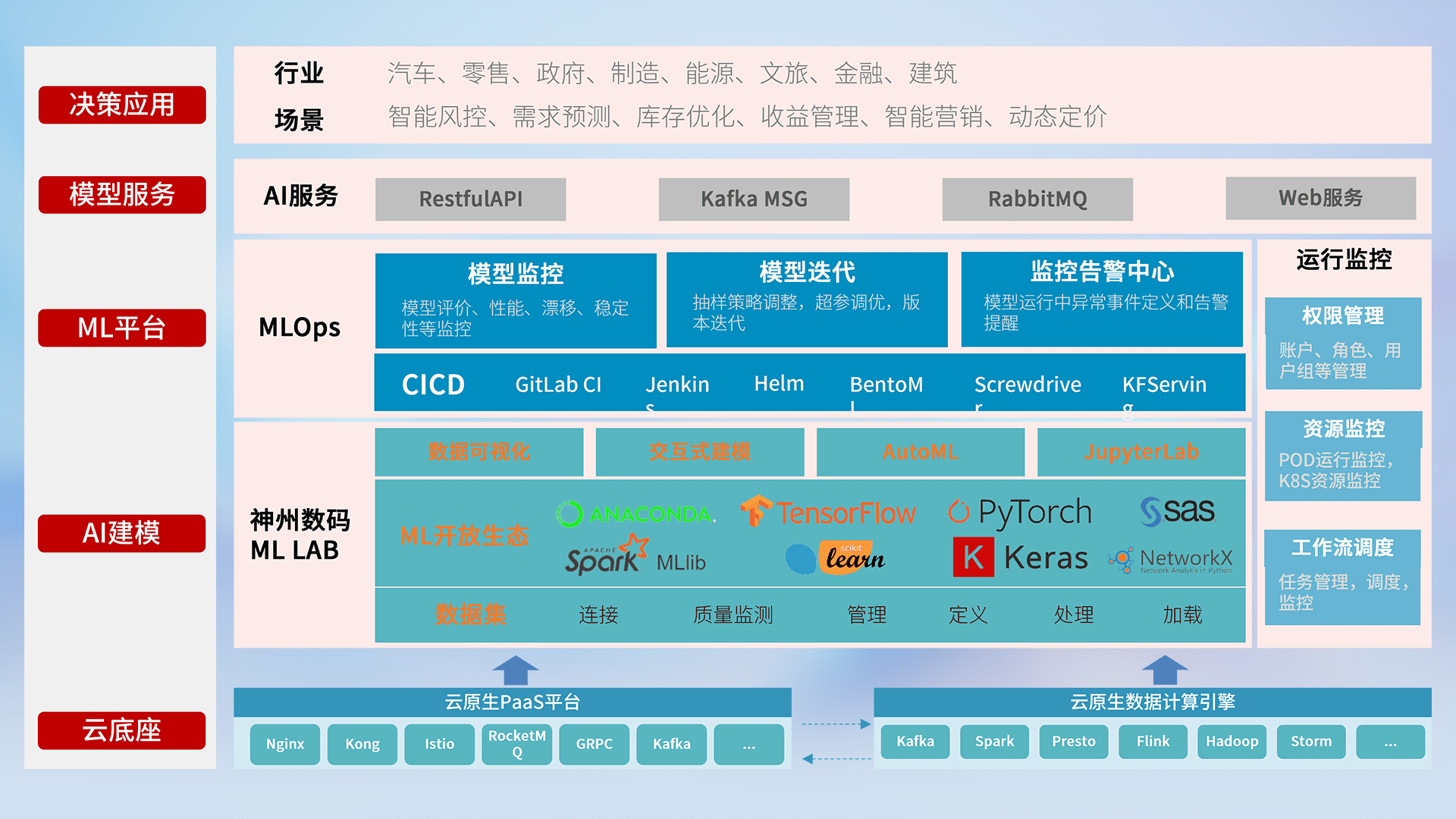 数据+模型双引擎驱动,,面向智能服务场景,,快速灵活利用AI技术,,支持业务决策,,,,助力企业智能化转型破局。。。